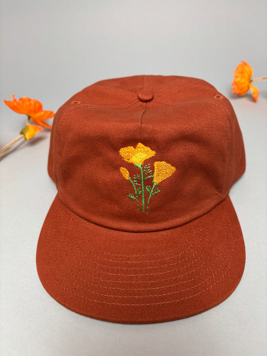 Embroidered California Poppies - Brushed Cotton Snap Back Hat