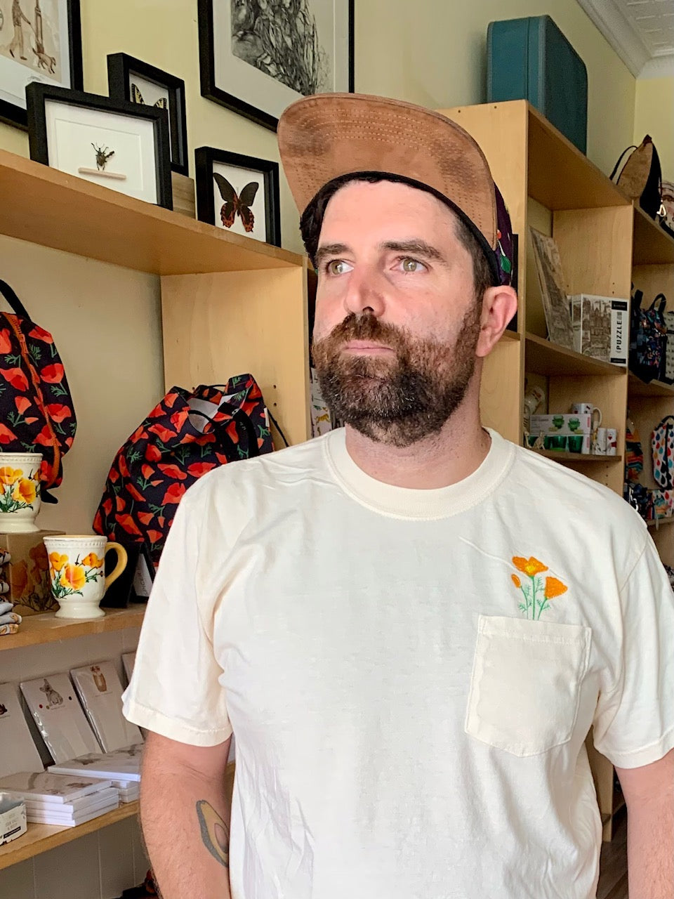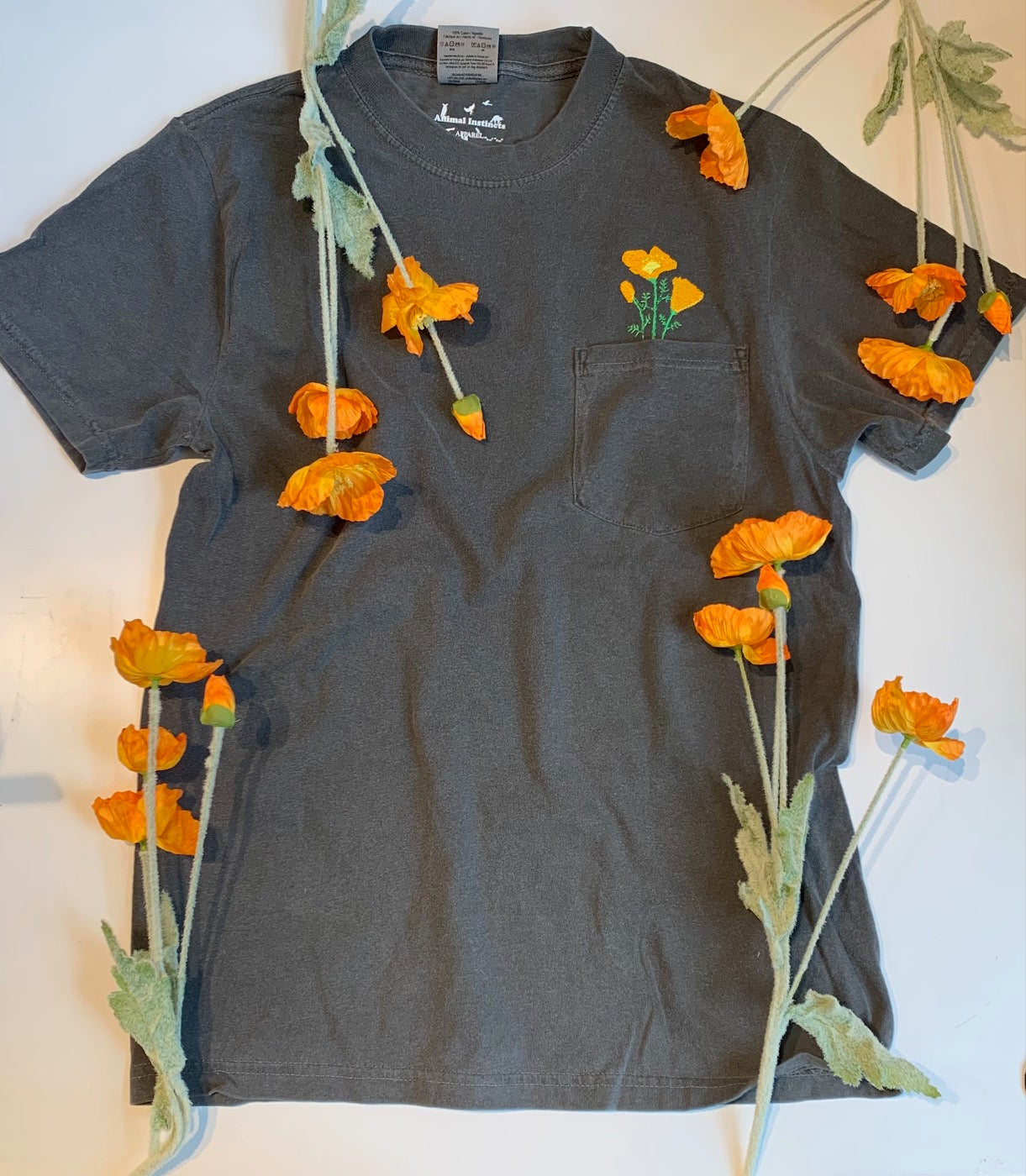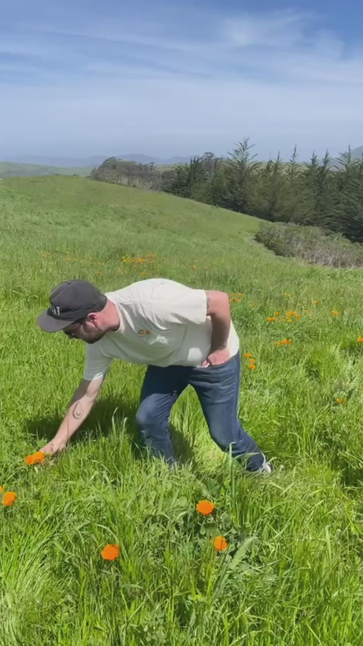 These 100% cotton pocket tees feature my hand-drawn California Poppy embroidery, stitched right here in the shop. Super comfy and made with sustainably grown USA cotton—these are an easy favorite. Unisex (size accordingly).