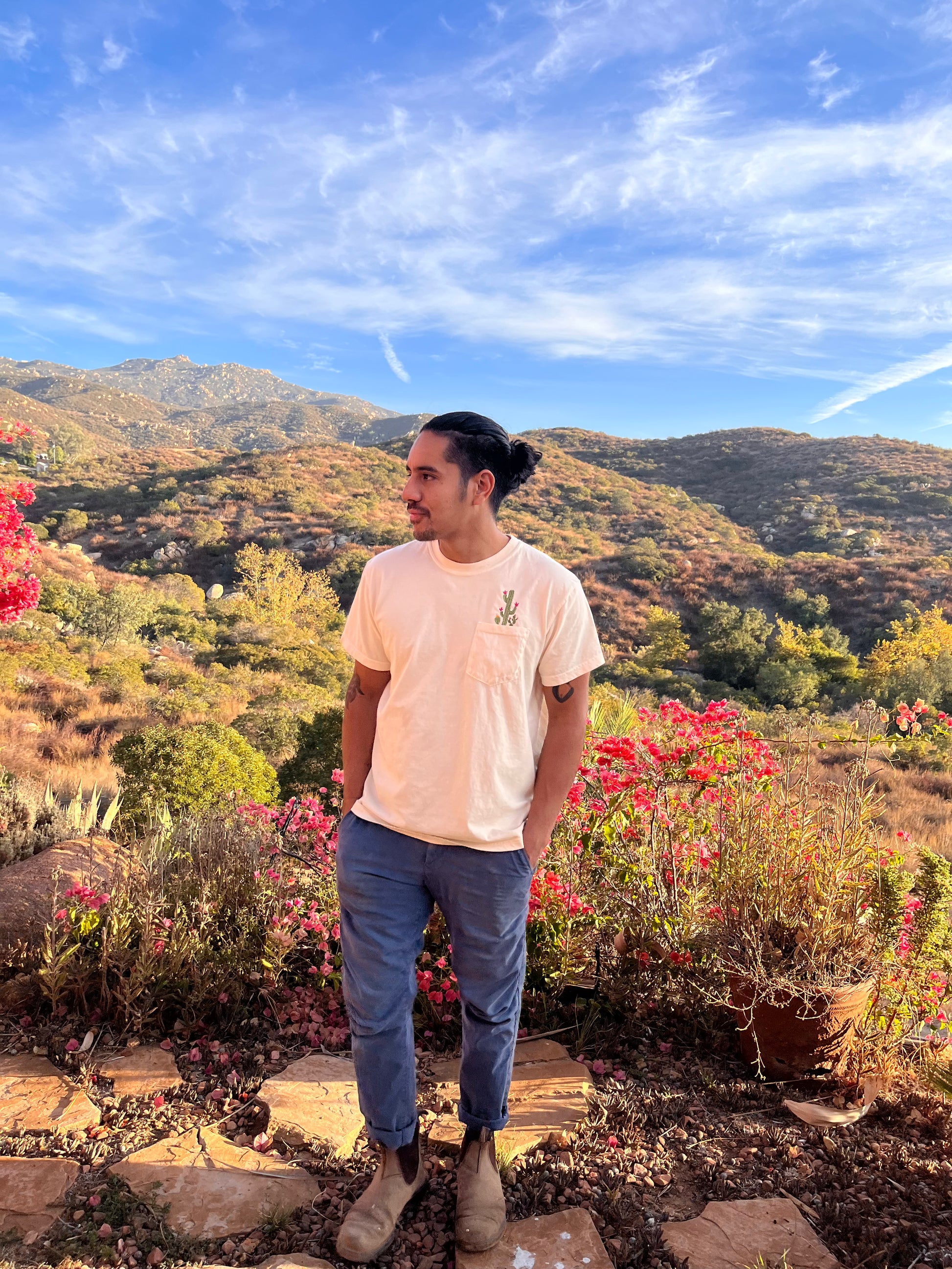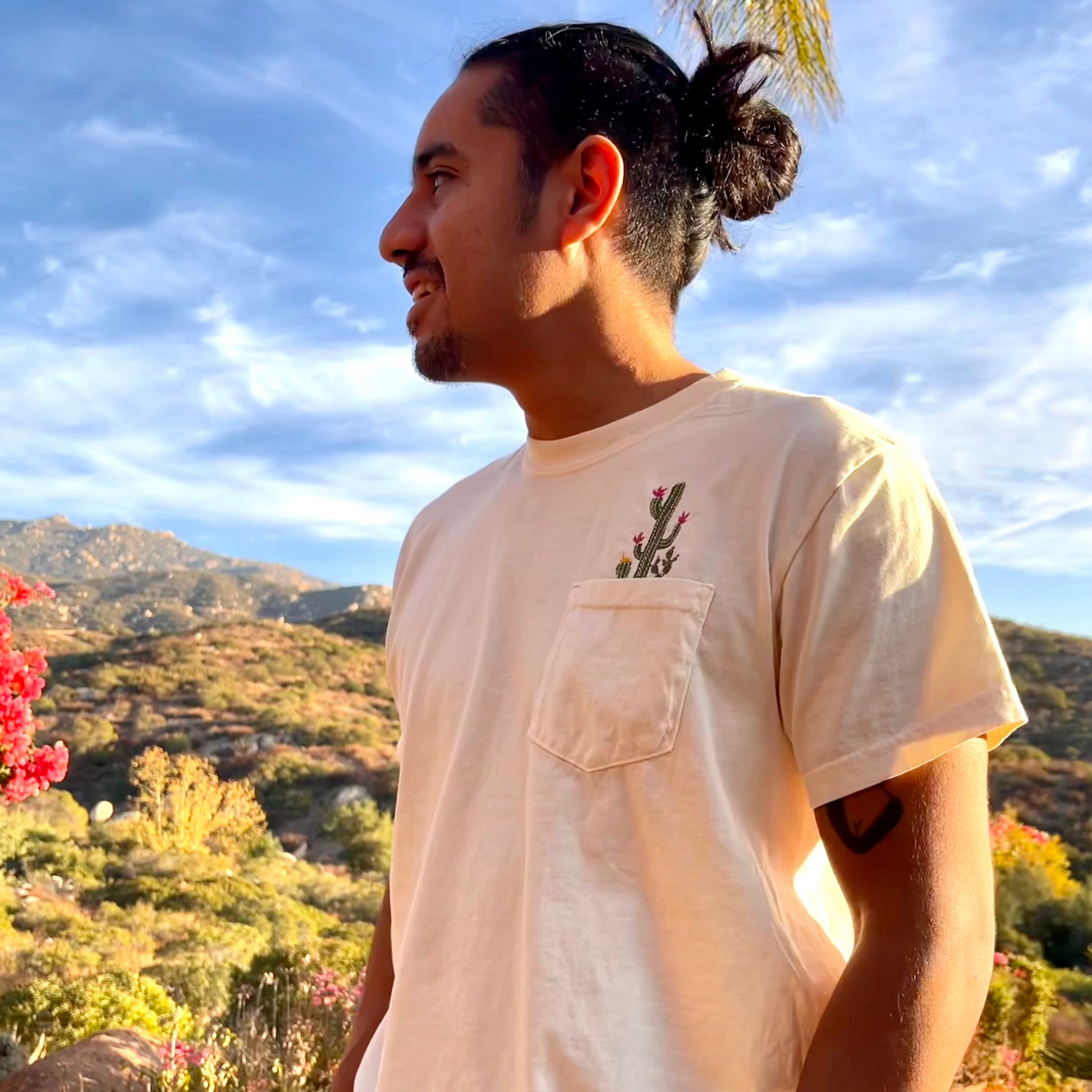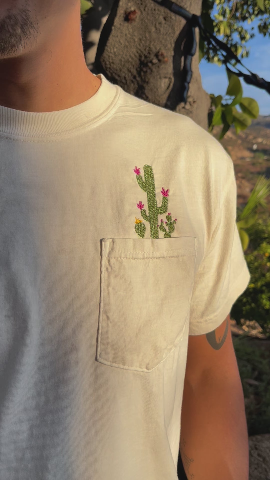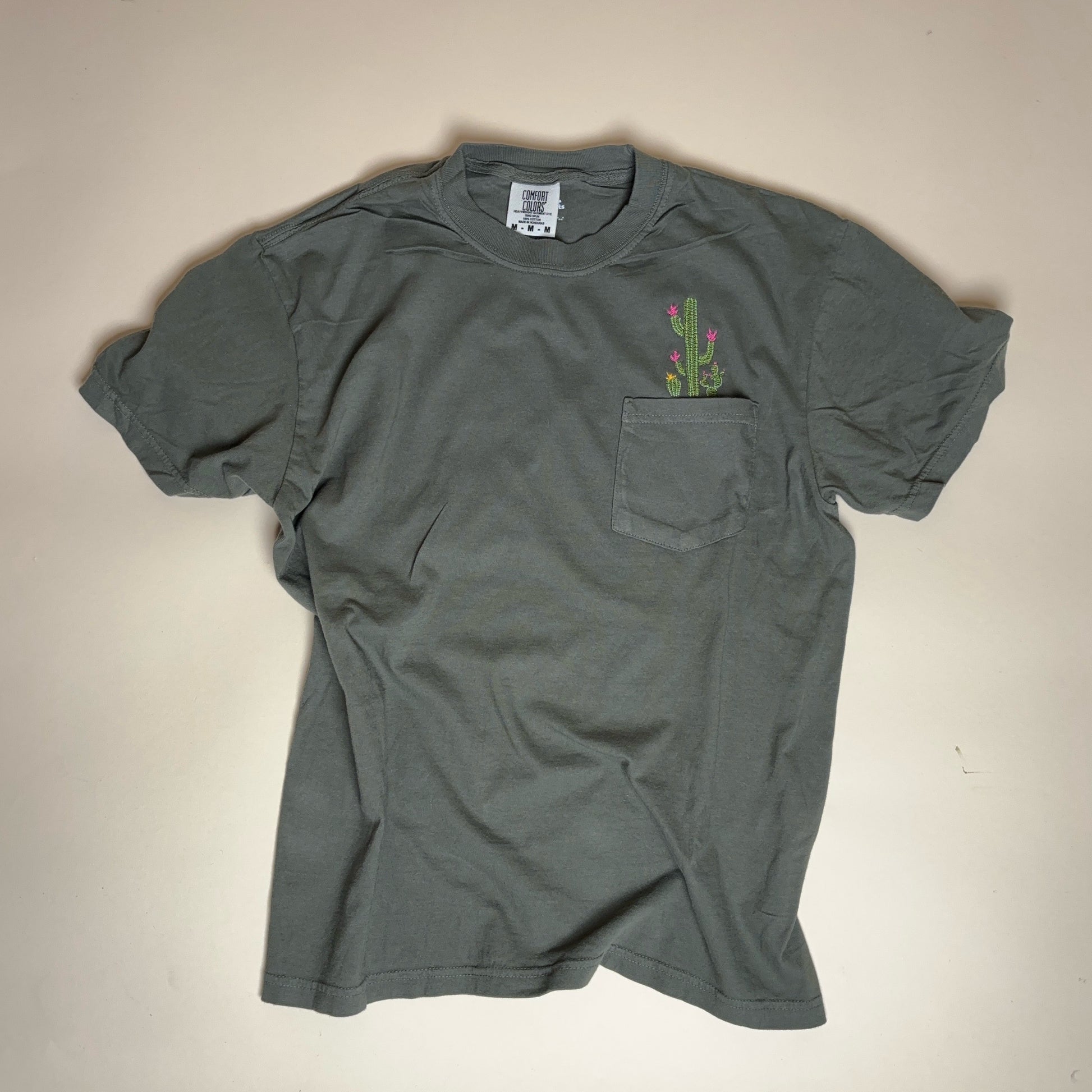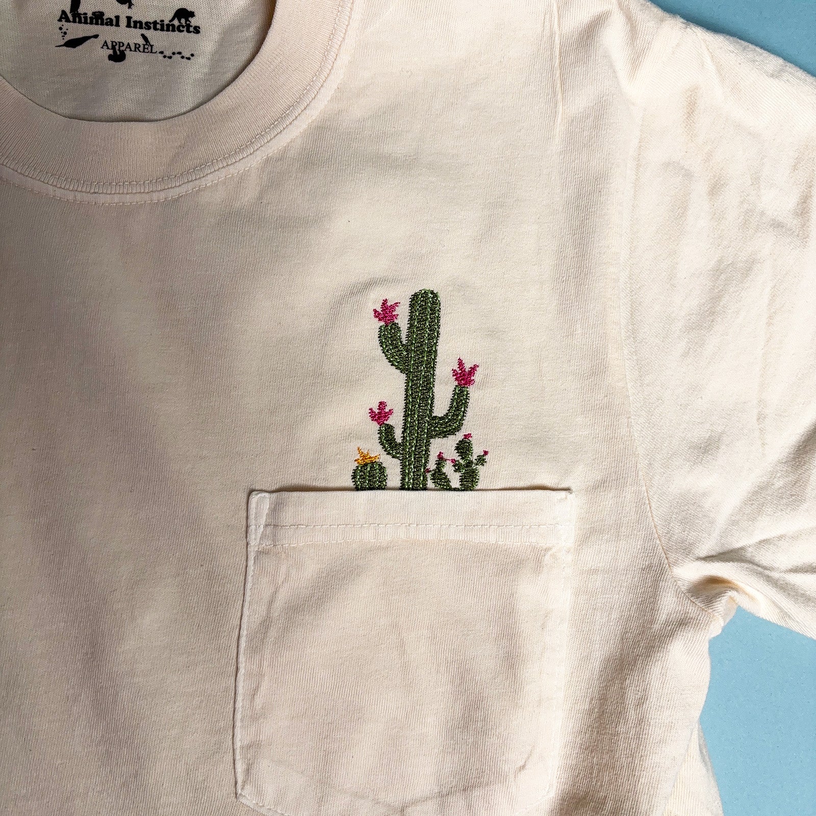 Botanical Cactus Embroidered Flower Unisex Tee Pocket Shirt