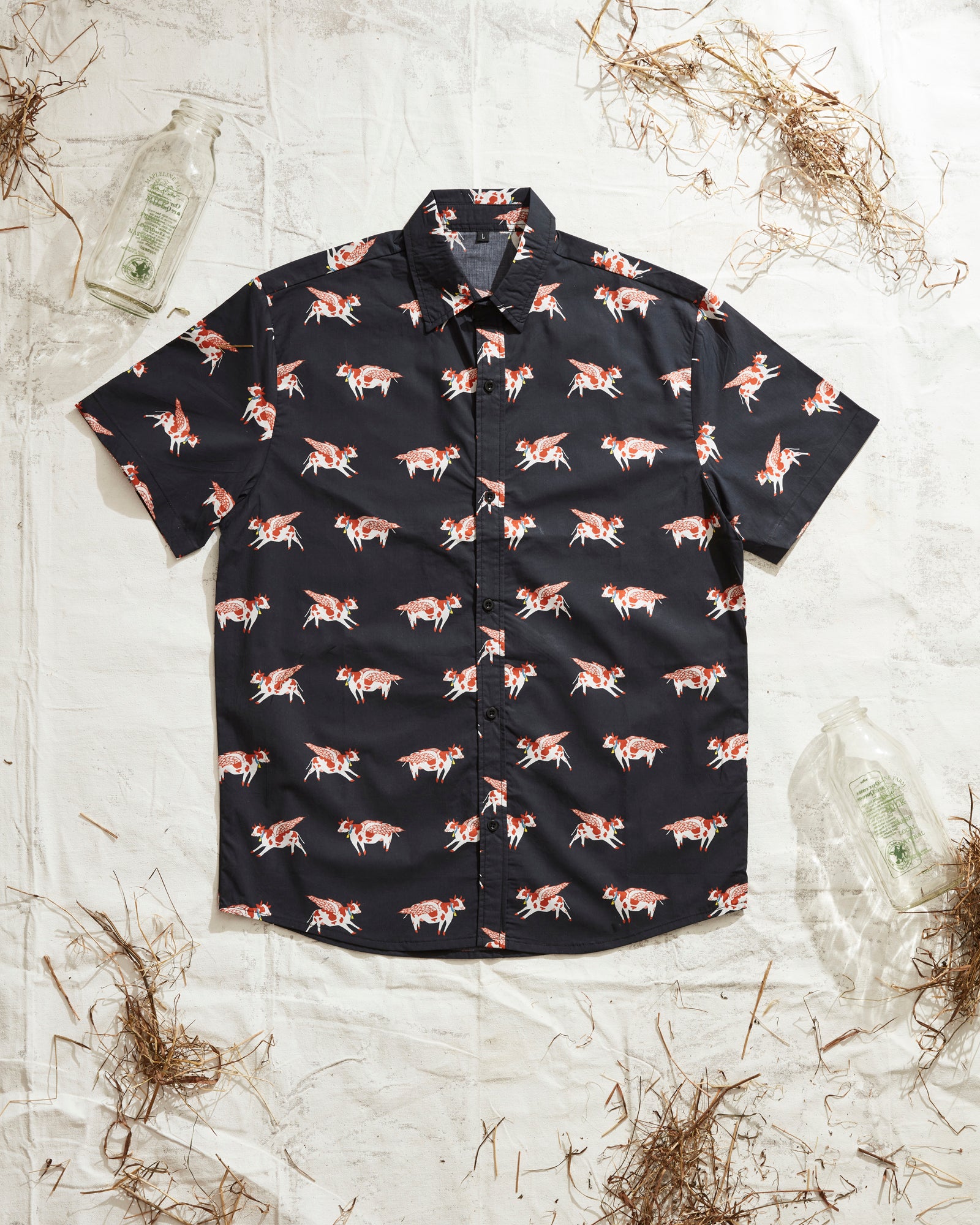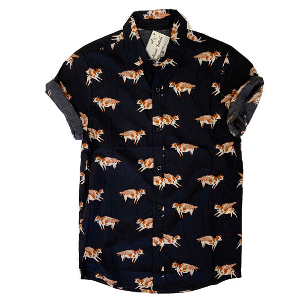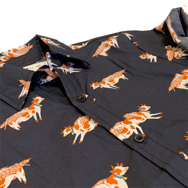 Unique Animal Button-Up Shirt with Cowprint Design - Flying Cows
