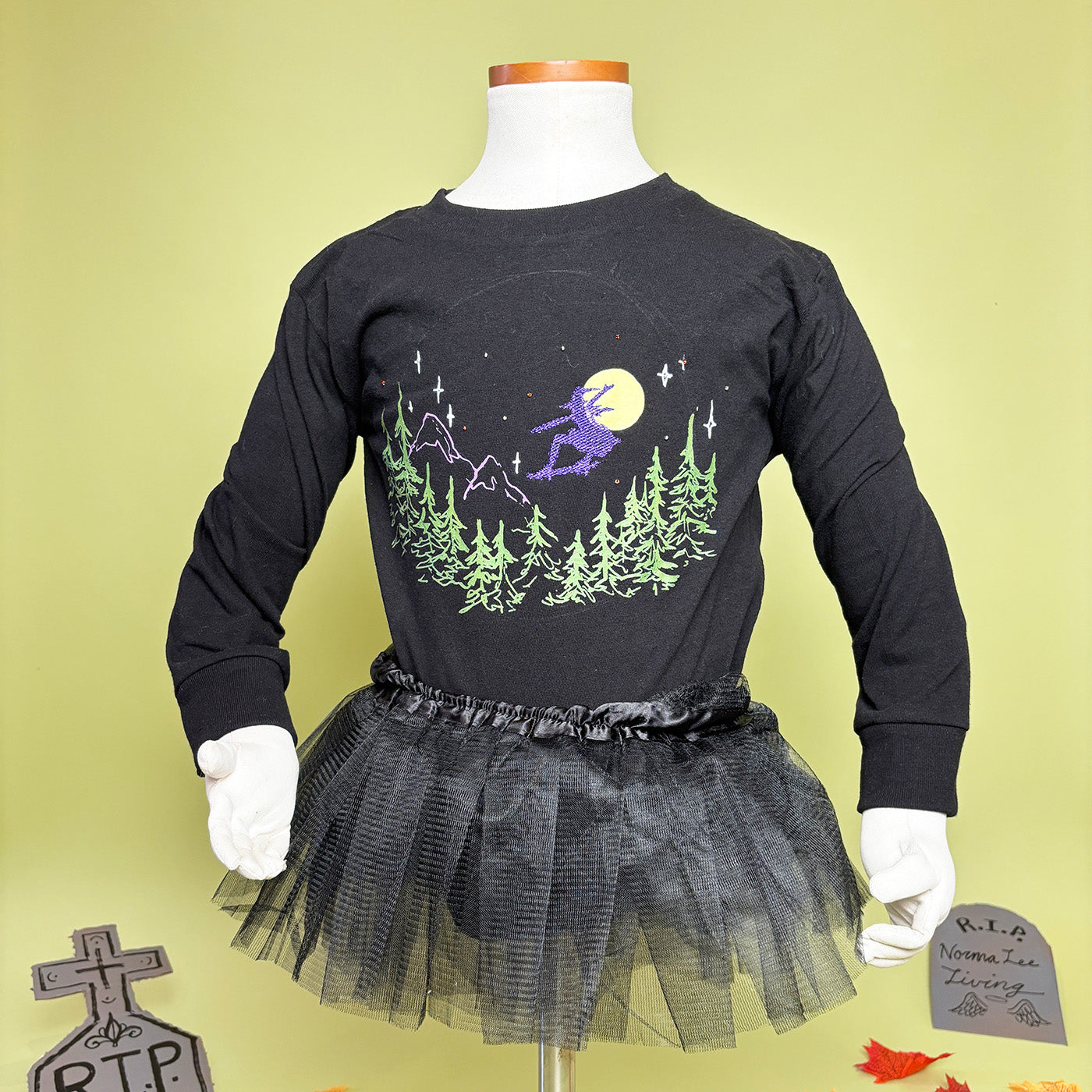 Toddler Witch Skateboarding Halloween Tutu Shirt – Long Sleeve