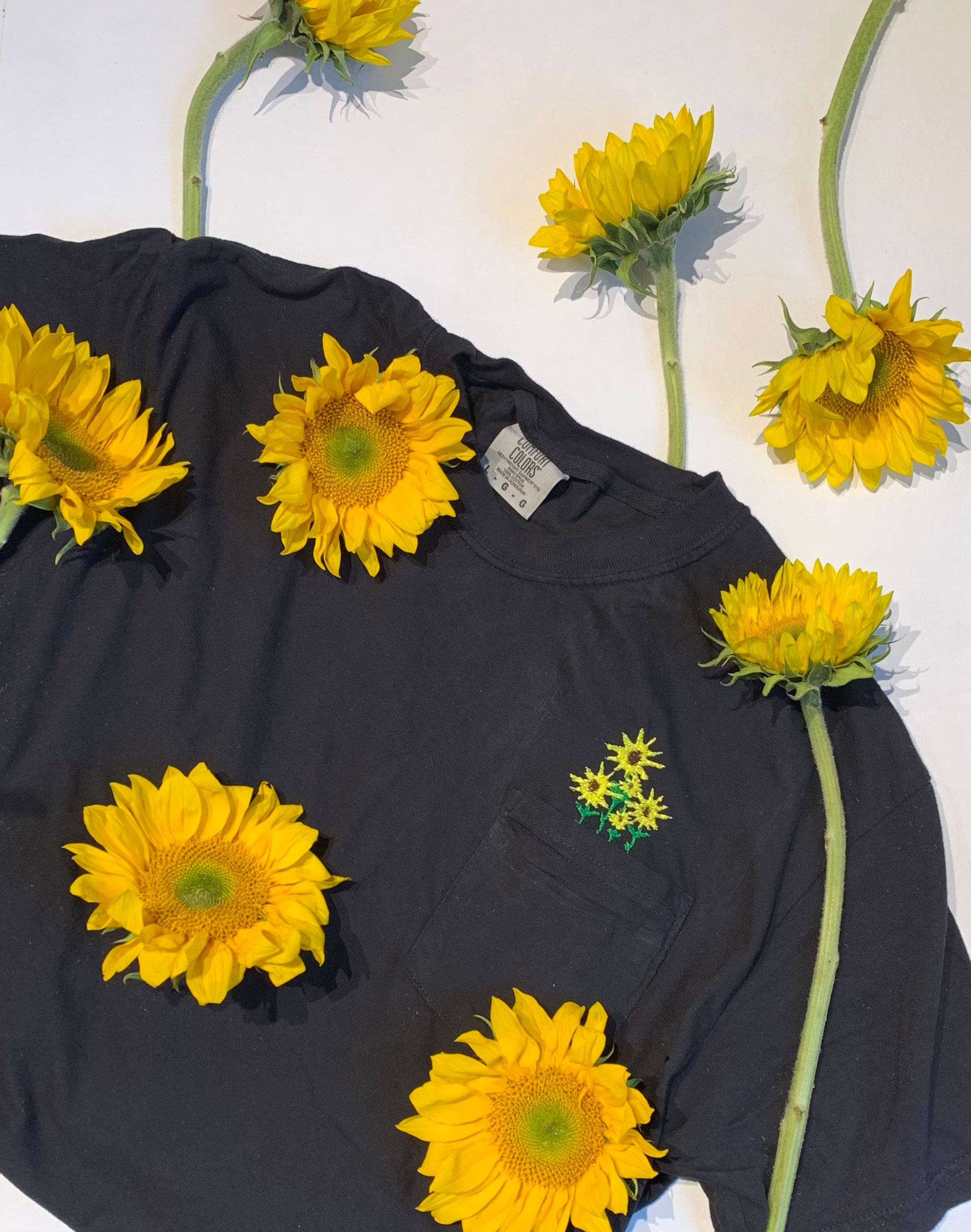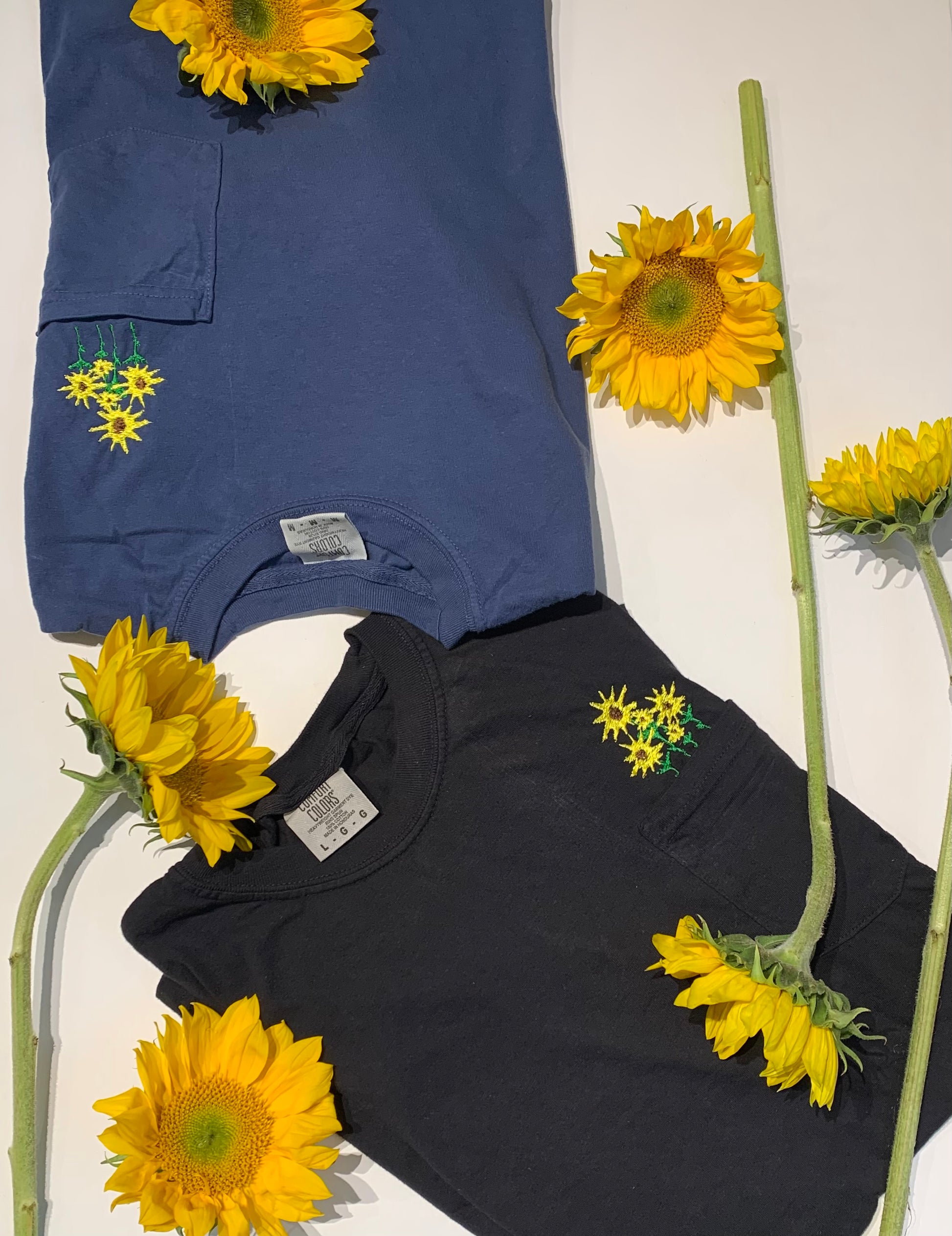 These 100% cotton embroidered sunflower pocket tees are all you need for comfort with a touch of artistic pop. I hand drew each sunflower and these are embroidered right in the back of the shop. I have been on the search for the perfect cotton pocket tees for this design and found them. These shirts are incredible fit and the sustainably USA grown cotton feel makes these your new favorite shirt.🌻🌻🌻