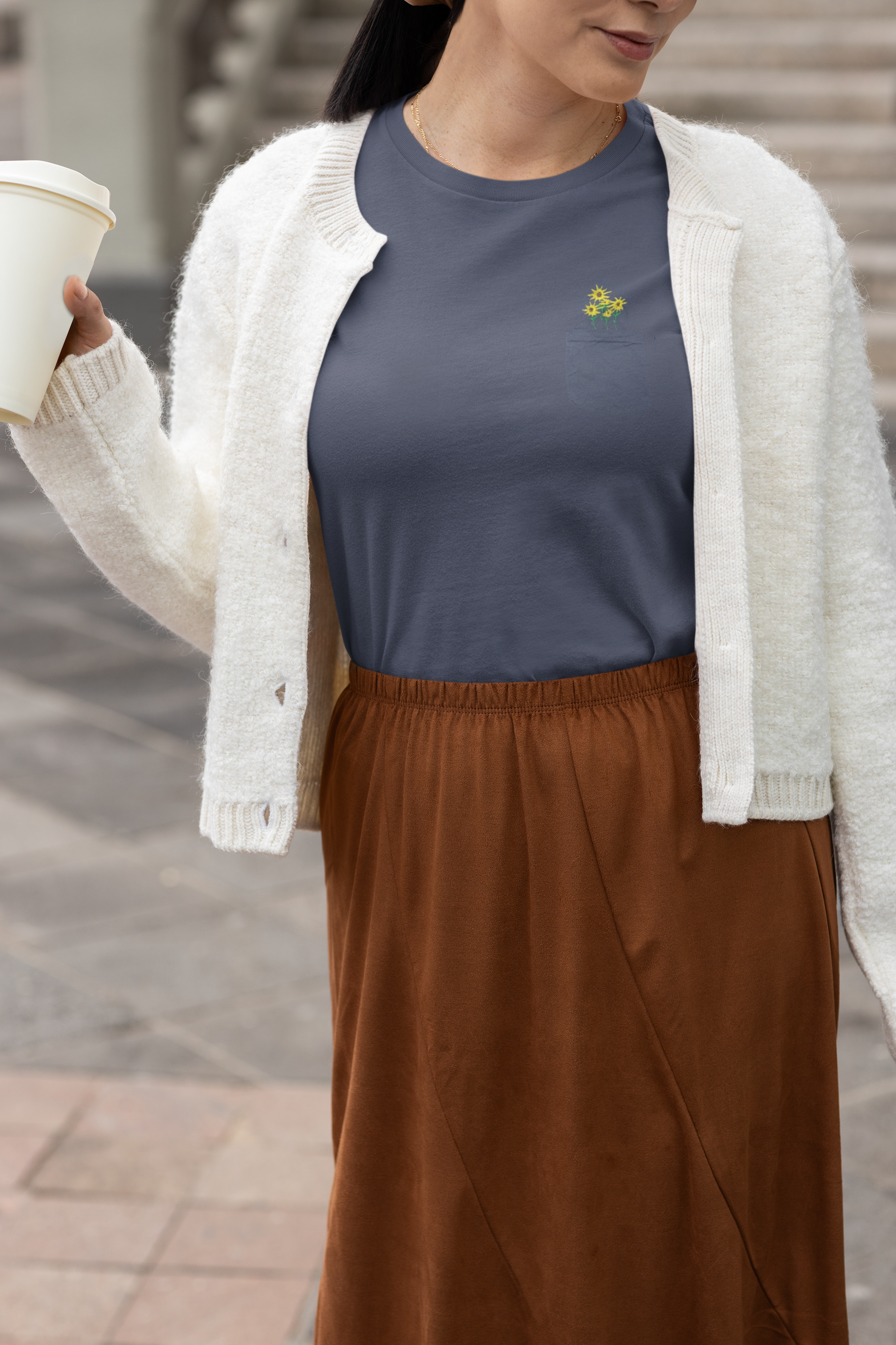 Unisex Embroidered Cotton Pocket Sunflower Tee