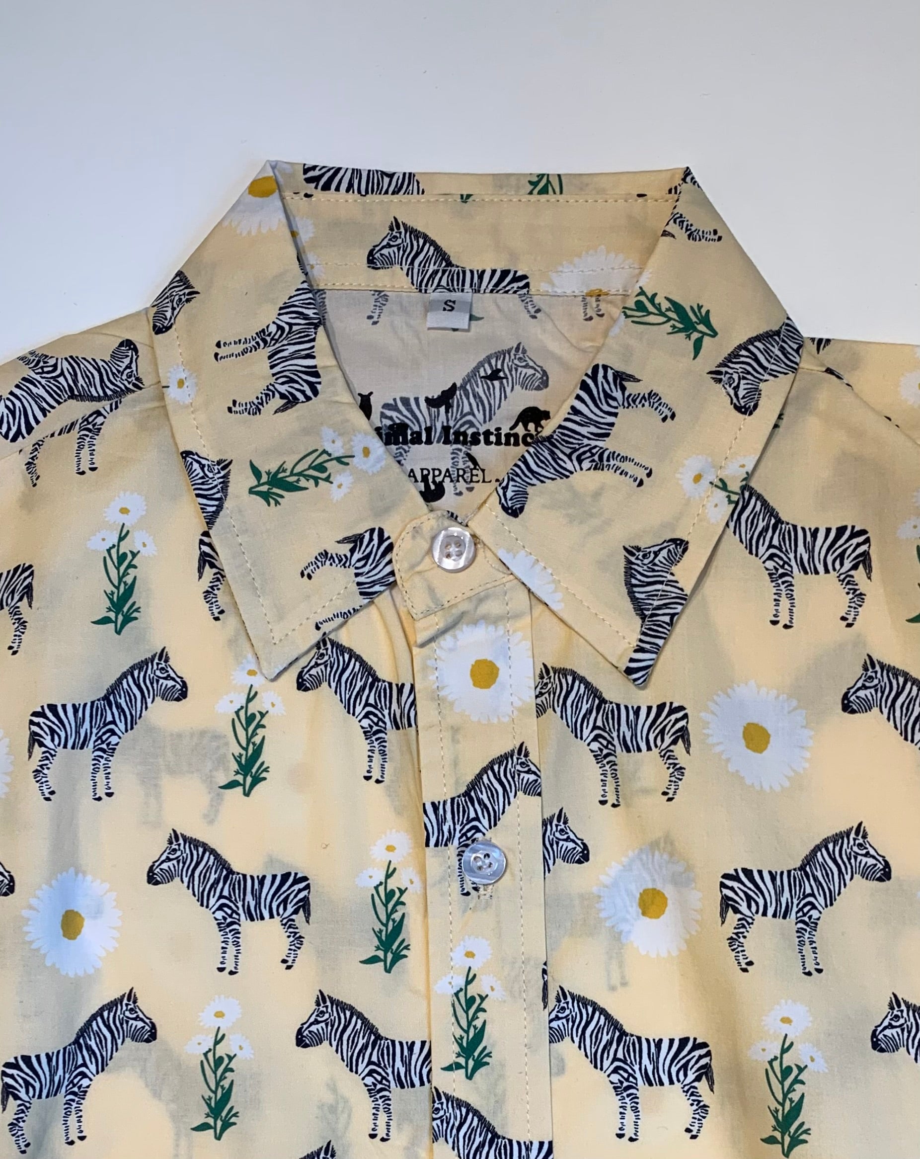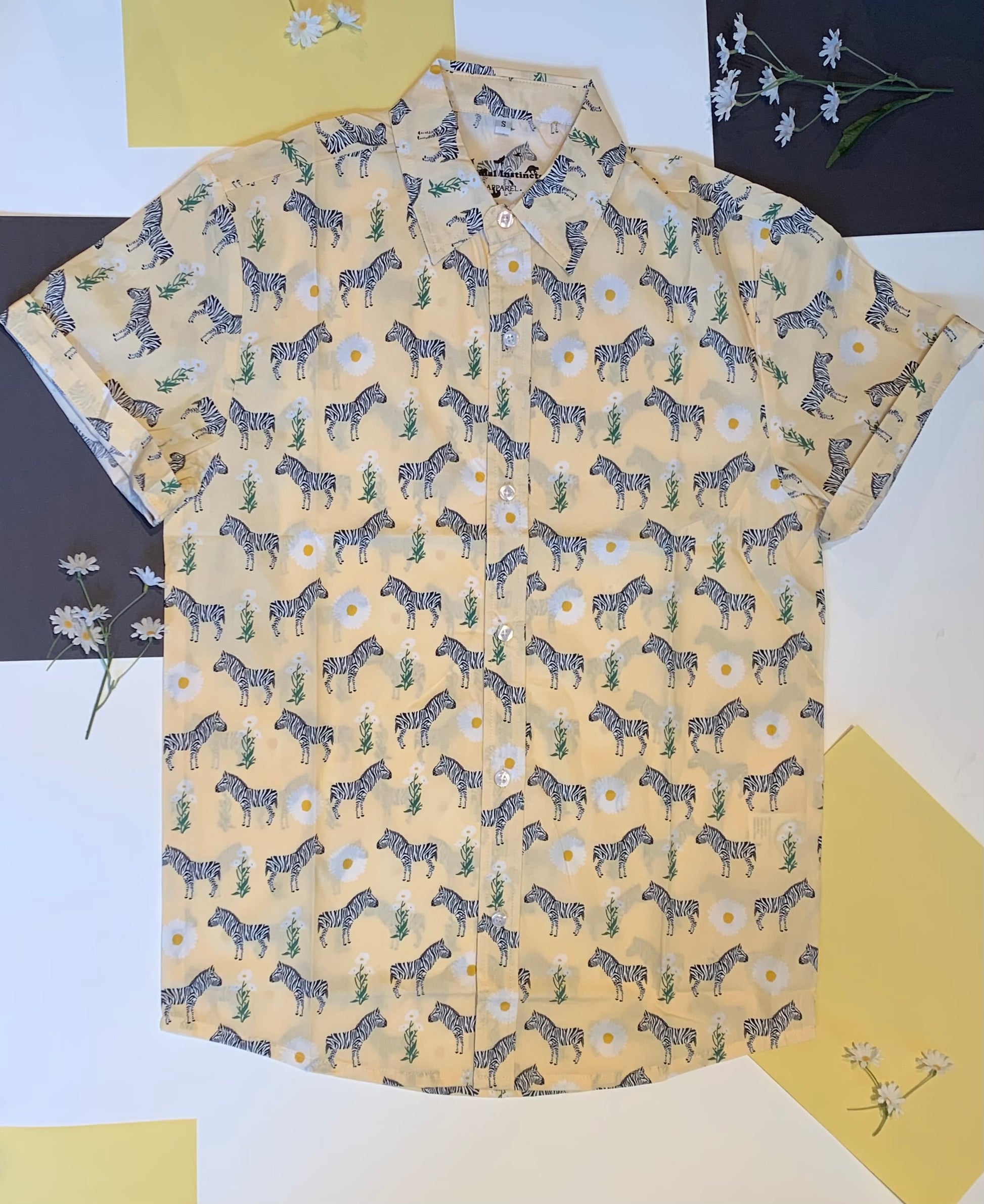 Unisex Cotton Zebra Print Short Sleeve Button-Up Shirt